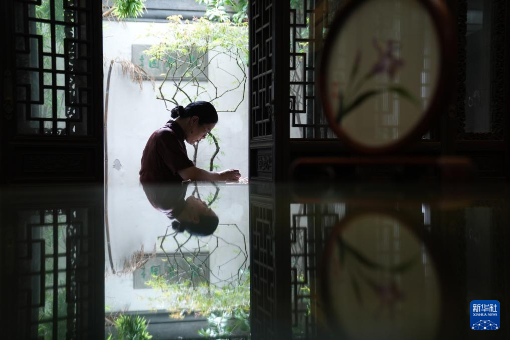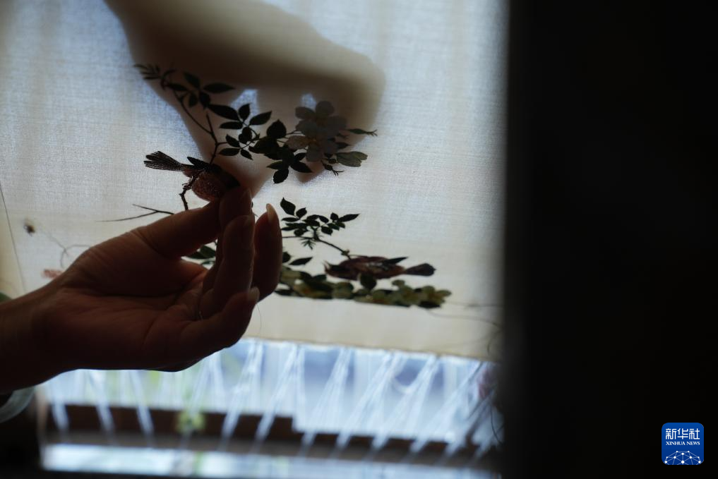 9月25日,盧建英在“觀繡園”傳習所內刺繡。