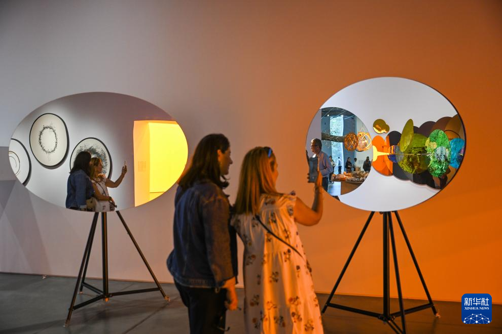 10月10日,參觀者在土耳其伊斯坦布爾現代藝術博物館內拍照。