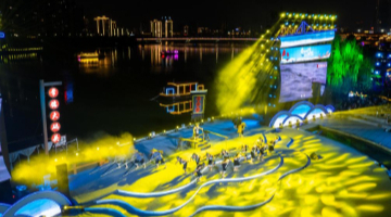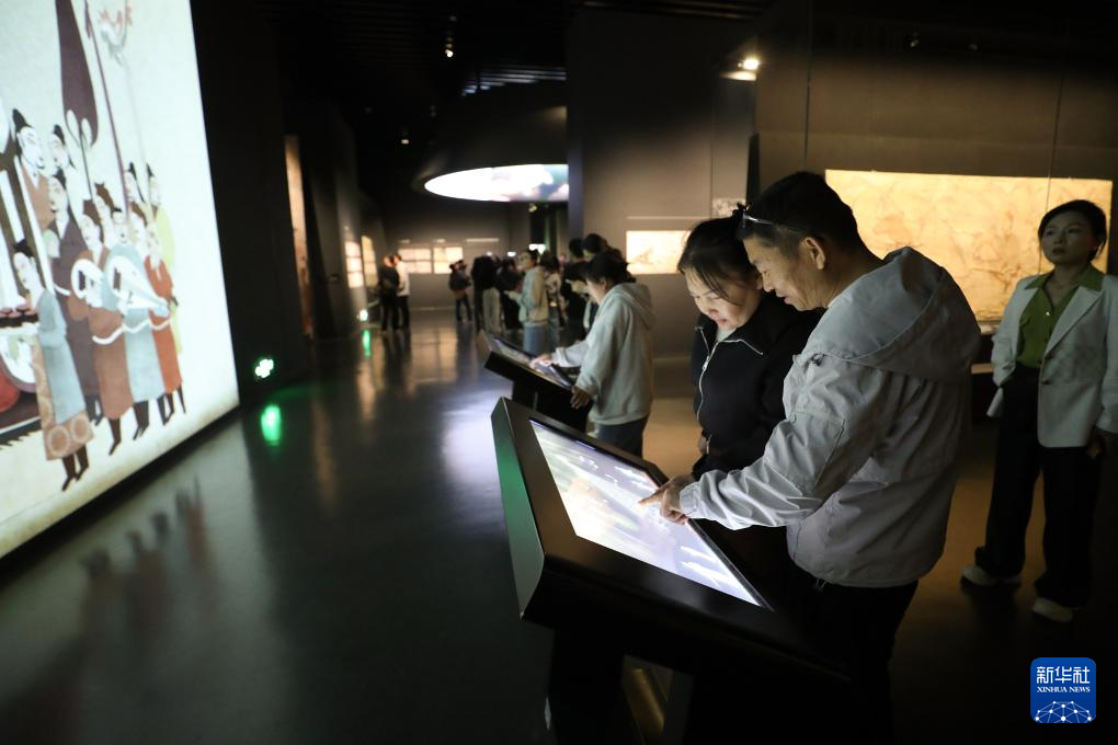 10月29日,觀眾在太原北齊壁畫博物館體驗互動項目。