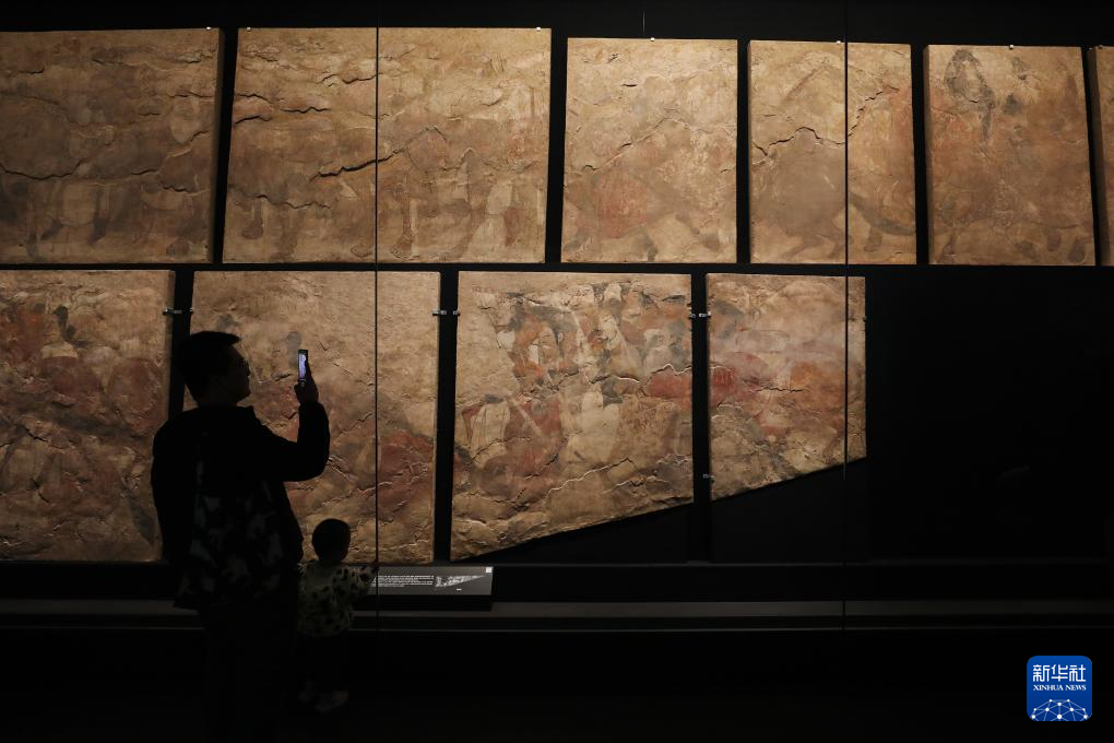 10月29日,觀眾在太原北齊壁畫博物館參觀。