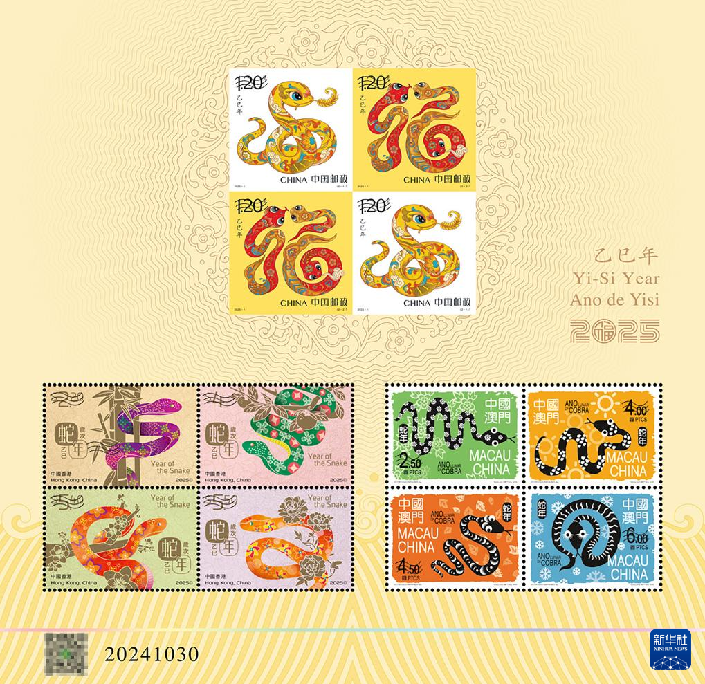10月30日,中國郵政《乙巳年》特種郵票圖稿發布儀式在北京舉行。發布儀式上公布了《乙巳年》特種郵票即蛇年生肖郵票圖稿并揭幕中國郵政攜手港、澳郵政部門共同印制的《乙巳年》生肖同題材三地小全張。