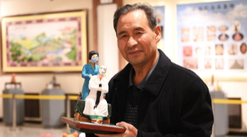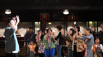 11月4日,媒體記者在上海非遺客廳內體驗漆器制作技藝。