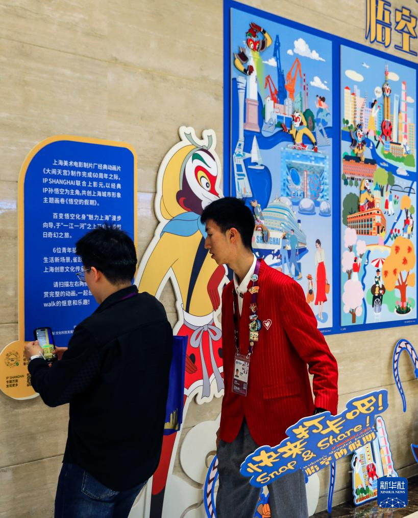 11月4日,媒體記者通過掃碼觀看上海城市形象主題畫卷《悟空的假期》。