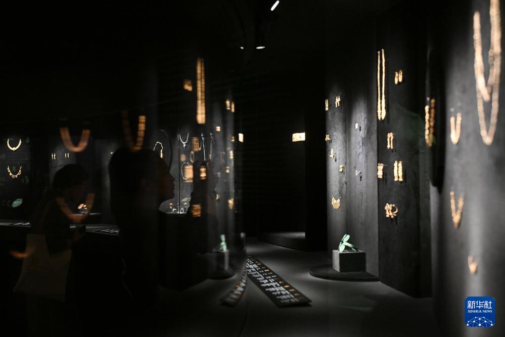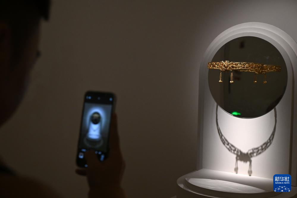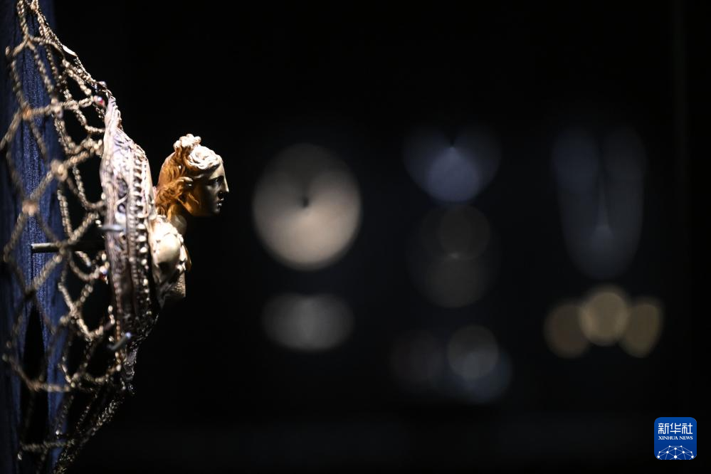 這是展覽展出的金鏈網頭飾(11月5日攝)。
