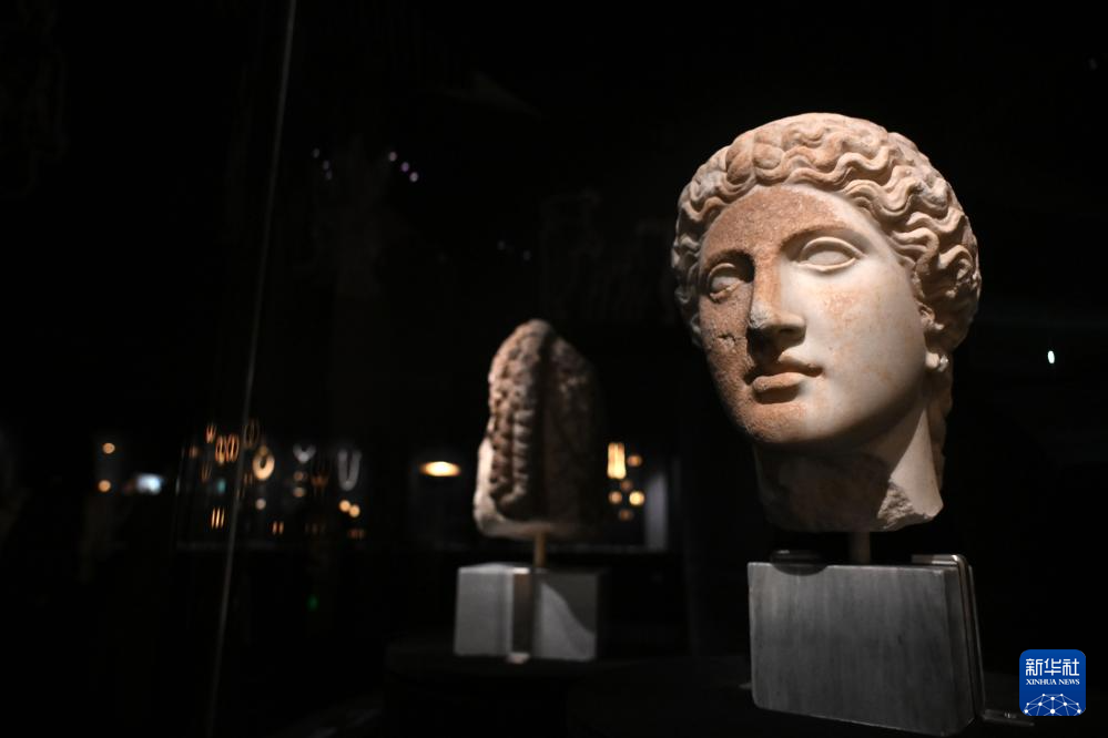 這是展覽展出的大理石年輕女性頭像(11月5日攝)。