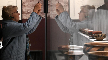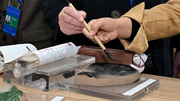 11月13日,在涇縣昌橋鄉孤峰村國民油布傘廠,省級非物質文化遺產傳承人鄭國民在檢查傘面。