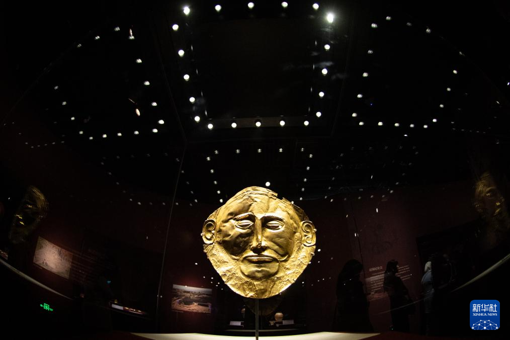 這是11月20日拍攝的展品“阿伽門農金面具”復制品。這件復制品來自希臘邁錫尼考古博物館,原件收藏于希臘國家考古博物館。