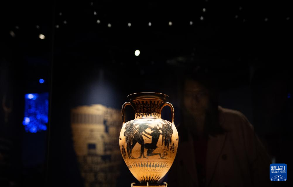 這是11月20日拍攝的來自希臘國家考古博物館的藏品黑繪雙耳瓶。