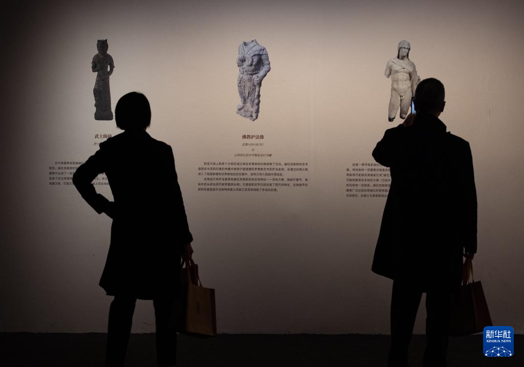 11月20日,參觀者在觀看古代希臘雕像藝術對古代中國雕像藝術影響的介紹。