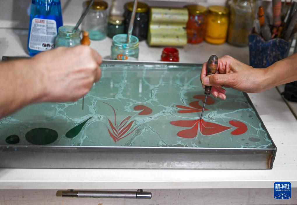 土耳其水拓畫是一種“水上作花、紙拓成畫”的古老繪畫技藝,2014年被聯合國教科文組織列入世界非物質文化遺產名錄。