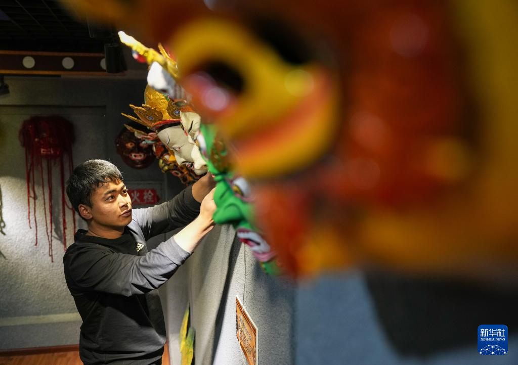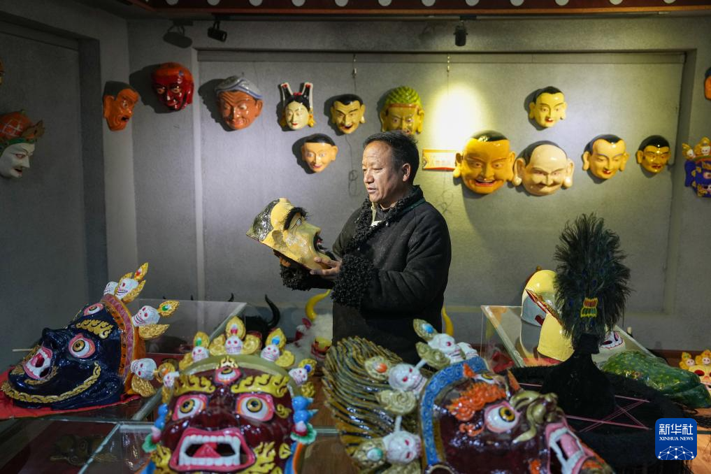 12月9日,合作社的工匠在查看西藏傳統面具。