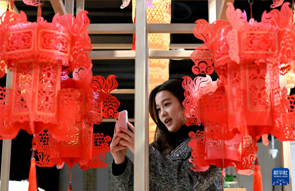 12月11日,游客在河北博物院文化創意空間參觀拍照。