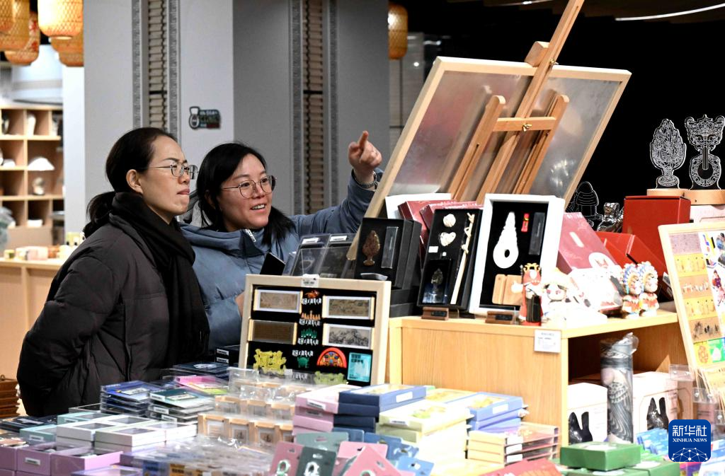 12月11日,游客在河北博物院河博集飾文創商店選購產品。
