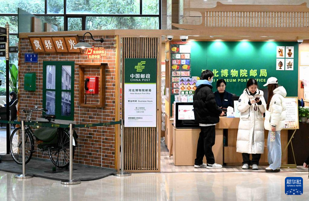 12月11日,游客在河北博物院主題郵局選購文創產品。