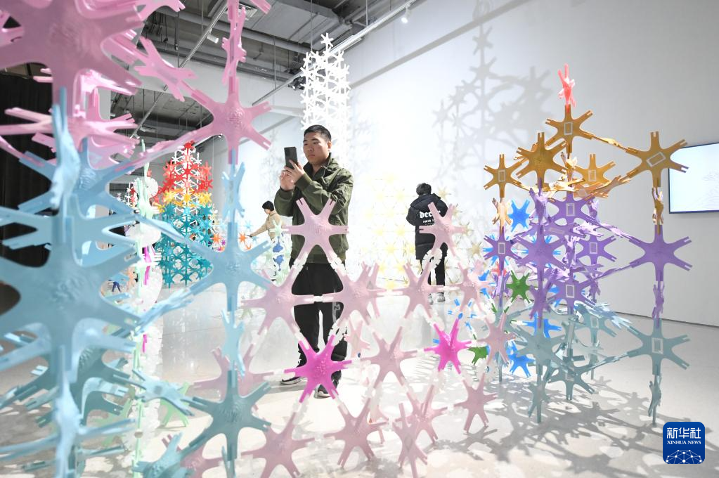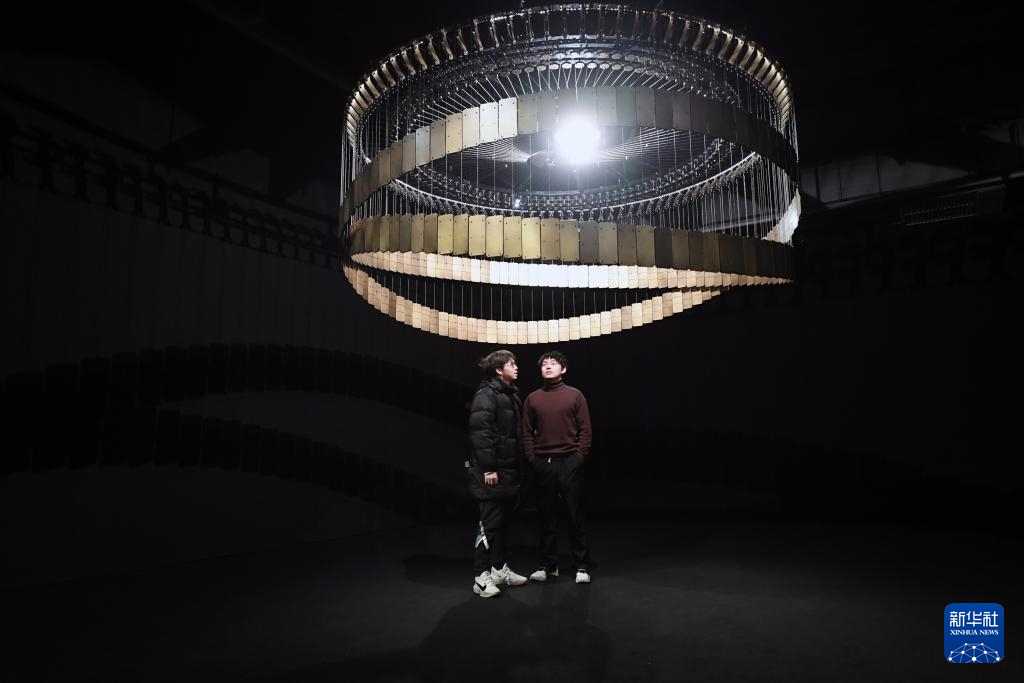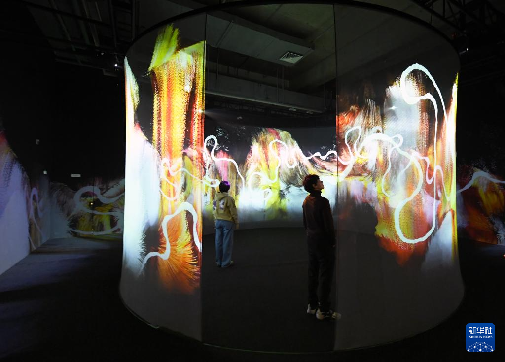 12月16日,在北京時代美術館,觀眾參觀《能量宇宙》藝術展。