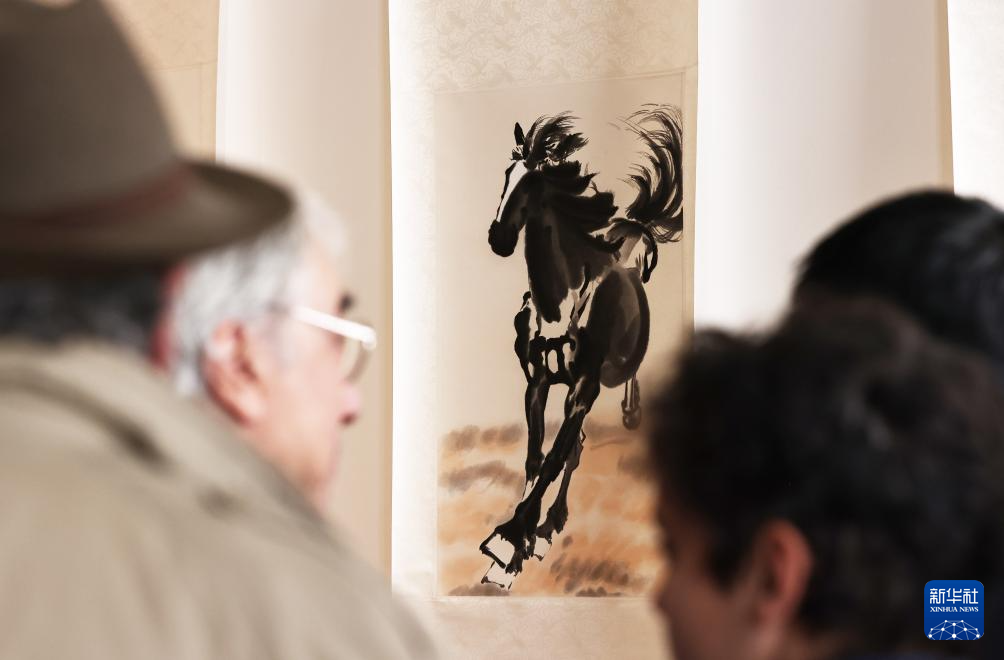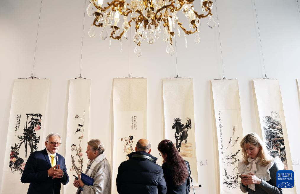 12月20日,在法國巴黎中國文化中心,嘉賓在“心境映象——榮寶齋當代藝術展暨木版水印特展”上參觀。