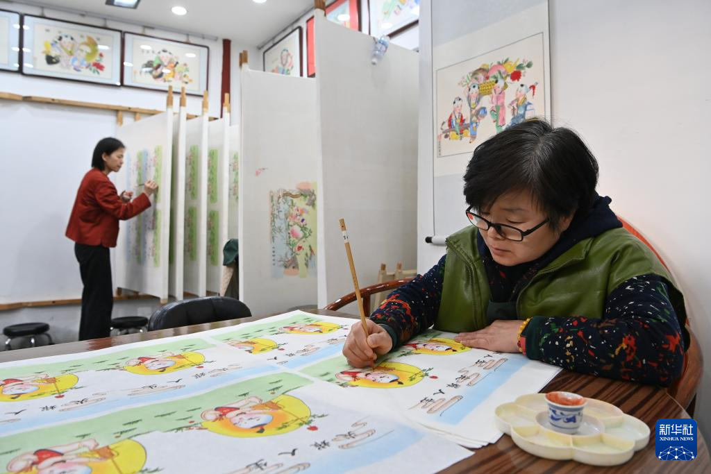 新年將至,在天津市西青區楊柳青古鎮,各家年畫店鋪都迎來趕制年畫訂單的高峰期。