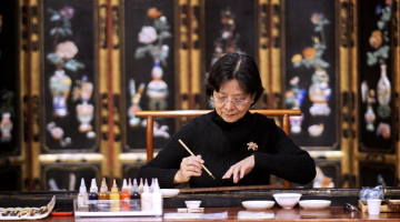 12月25日,觀眾在福建省海峽民間藝術館觀賞漆藝作品。