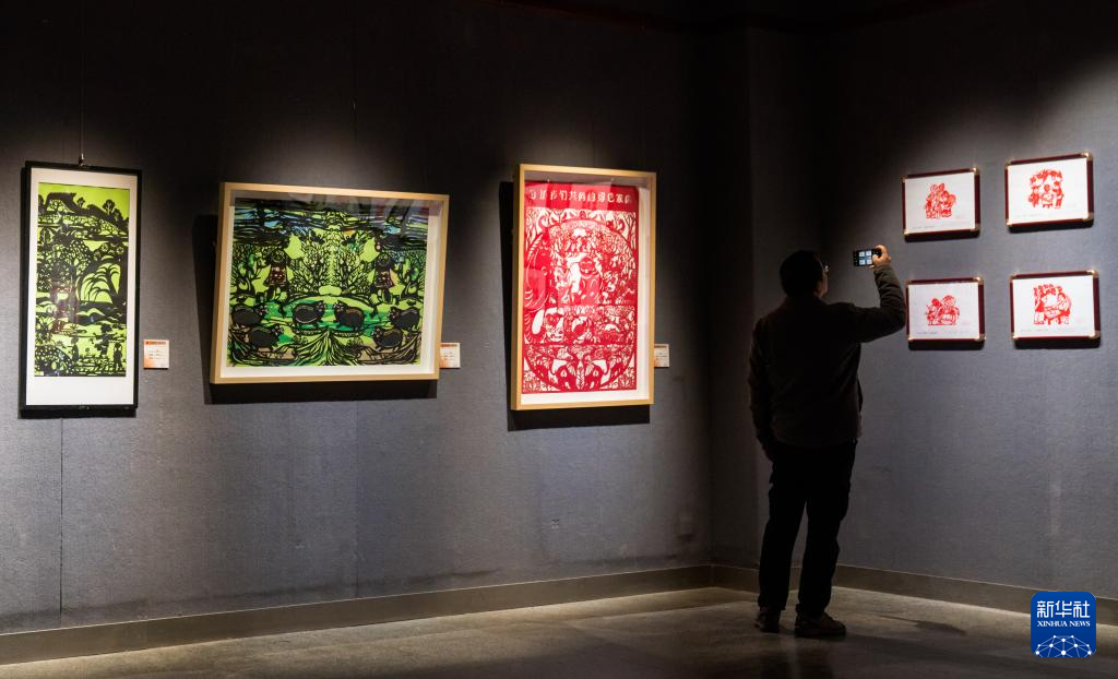 12月26日,游客在昆明市博物館參觀剪紙作品。