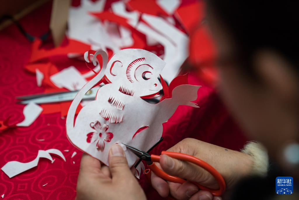 12月26日,在昆明市博物館,非遺剪紙傳承人段云麗表演生肖剪紙。