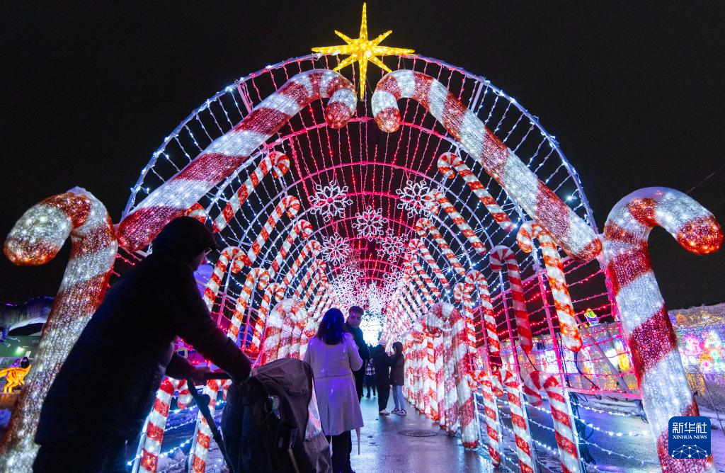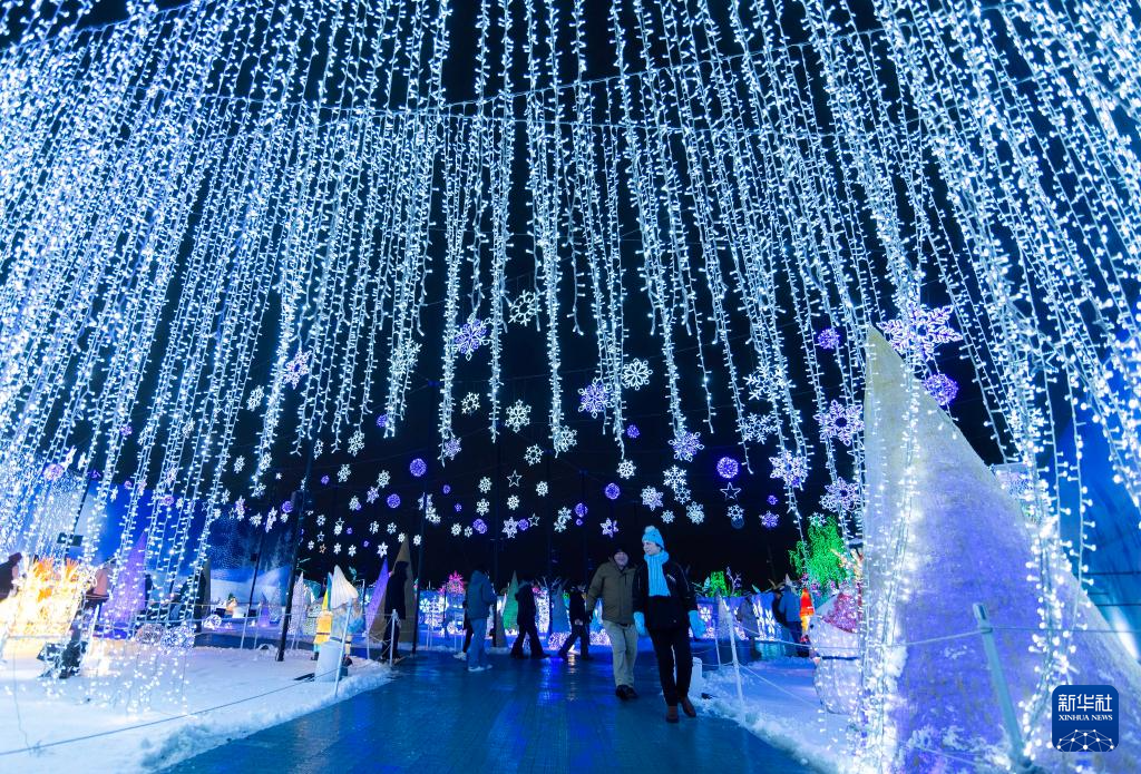 12月24日,人們在加拿大安大略省米西索加舉辦的燈展上參觀。