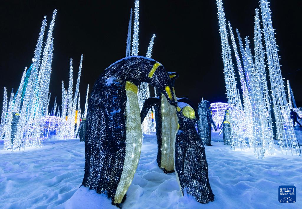 這是12月24日在加拿大安大略省米西索加舉辦的燈展上拍攝的彩燈作品。