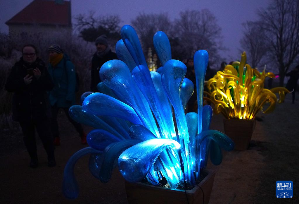 12月27日,在捷克布拉格植物園,人們參觀玻璃藝術展。