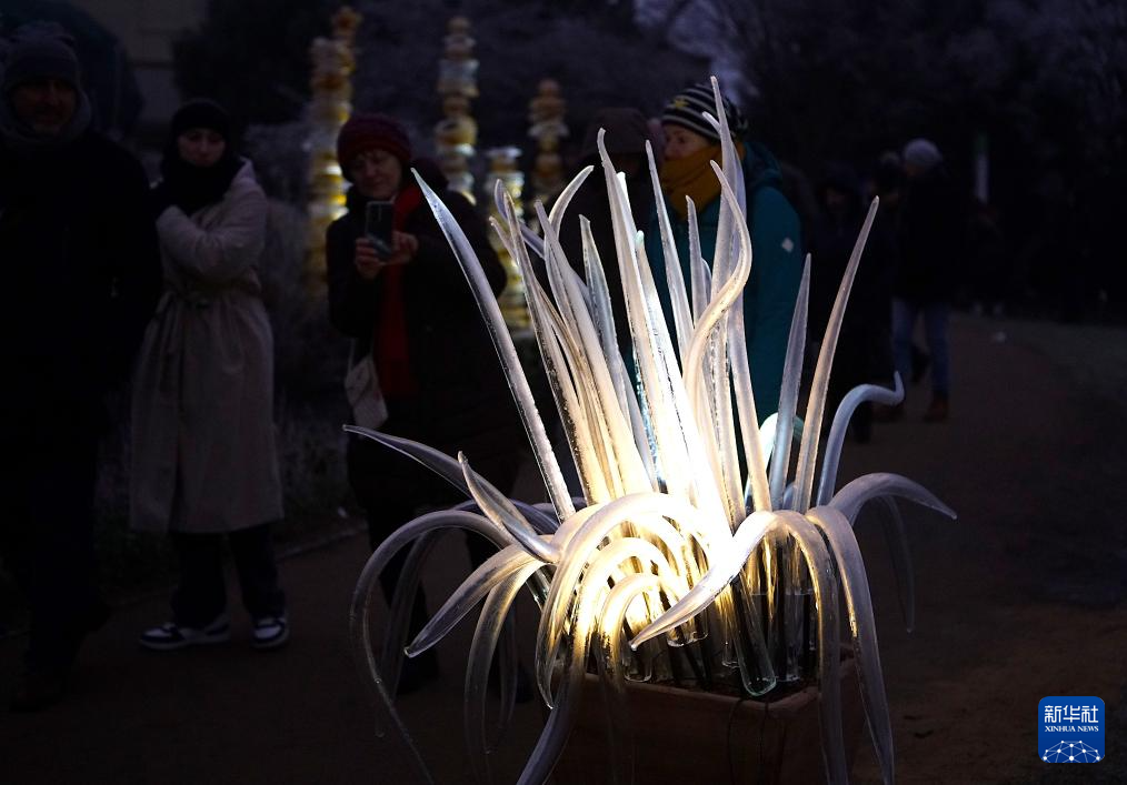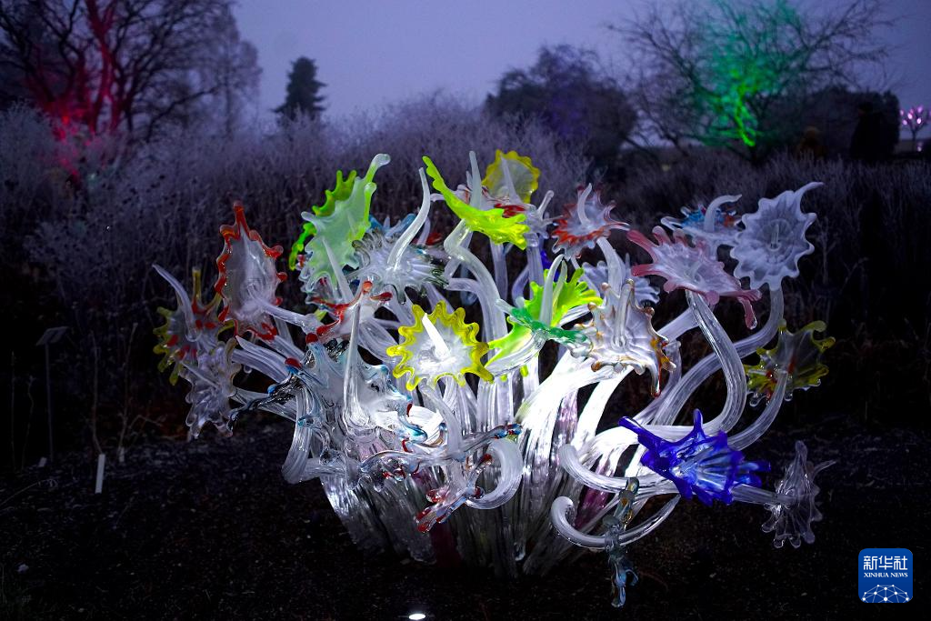 這是12月27日在捷克布拉格植物園拍攝的玻璃藝術展展品。