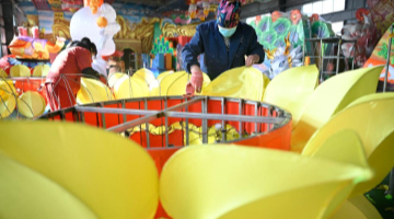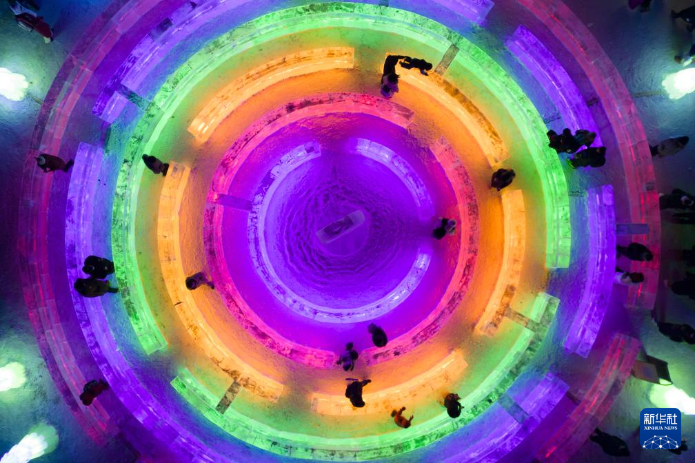 12月30日,人們在第51屆冰燈藝術游園會現場游玩(無人機照片)。
