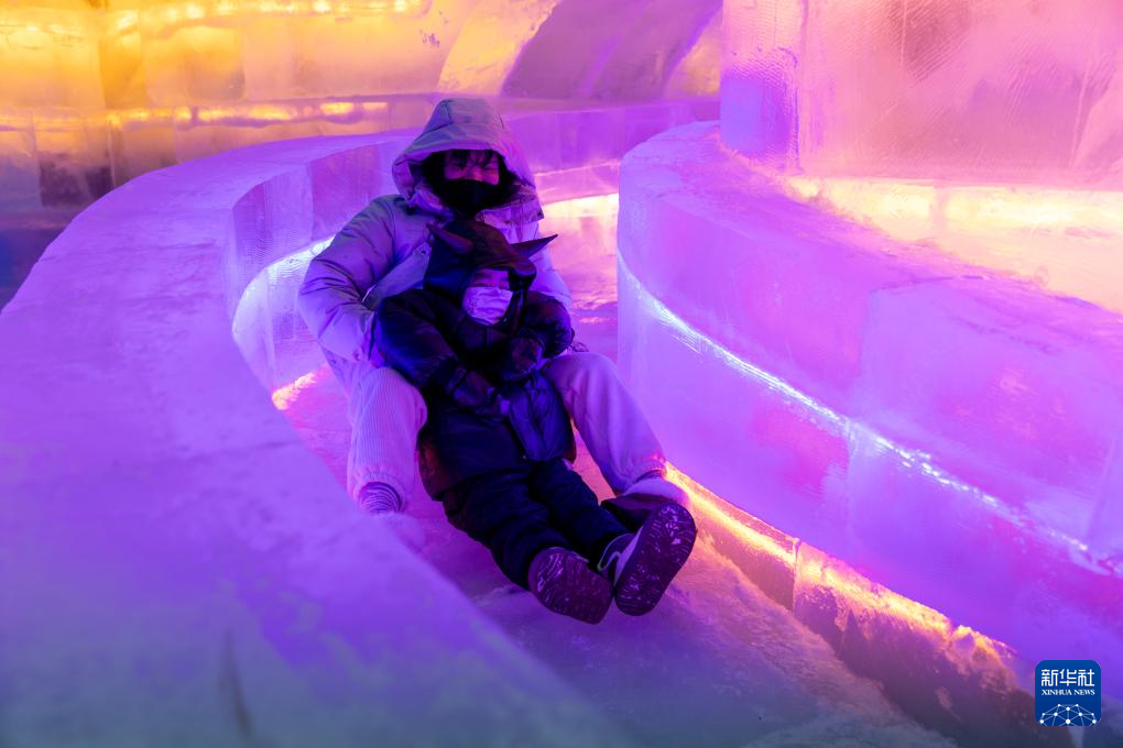 12月30日,人們在第51屆冰燈藝術游園會現場游玩。