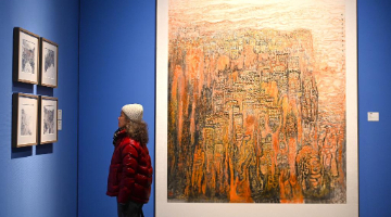 1月3日,在位于山東省巨野縣的巨野縣書畫院工筆畫繪制室,繪畫師樊玉梅展示自己的作品。