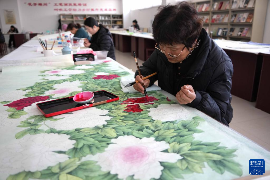 近日,山東省巨野縣的工筆畫繪畫師忙著繪制以牡丹畫為代表的工筆畫作品,供應春節節前文化消費市場。近年來,山東省巨野縣大力發展工筆畫產業,全縣有繪畫專業鎮4個、繪畫專業村50個,書畫產業從業人員2萬余人,年創作工筆畫作品超過100萬件,作品遠銷40多個國家和地區。
