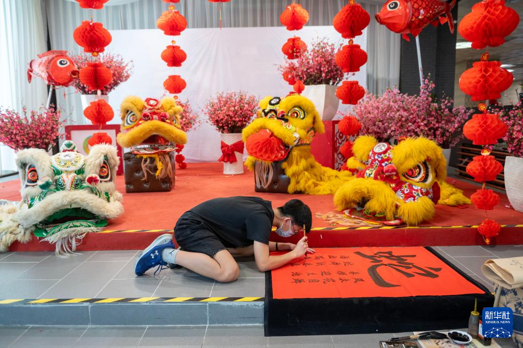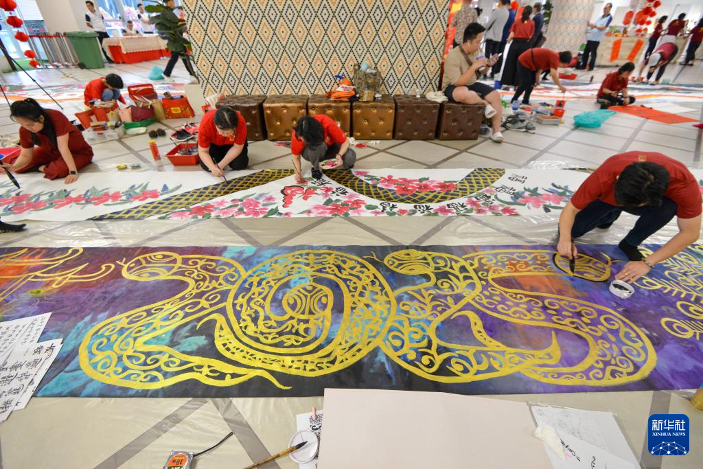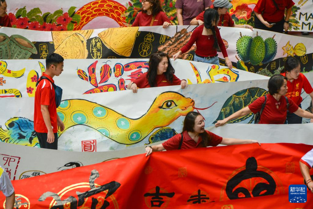 當天,馬來西亞大約160名書畫學員共同在長達2025尺長卷上創作以“乙巳蛇年”為主題的作品,表達對春節美好的祝福和向往。