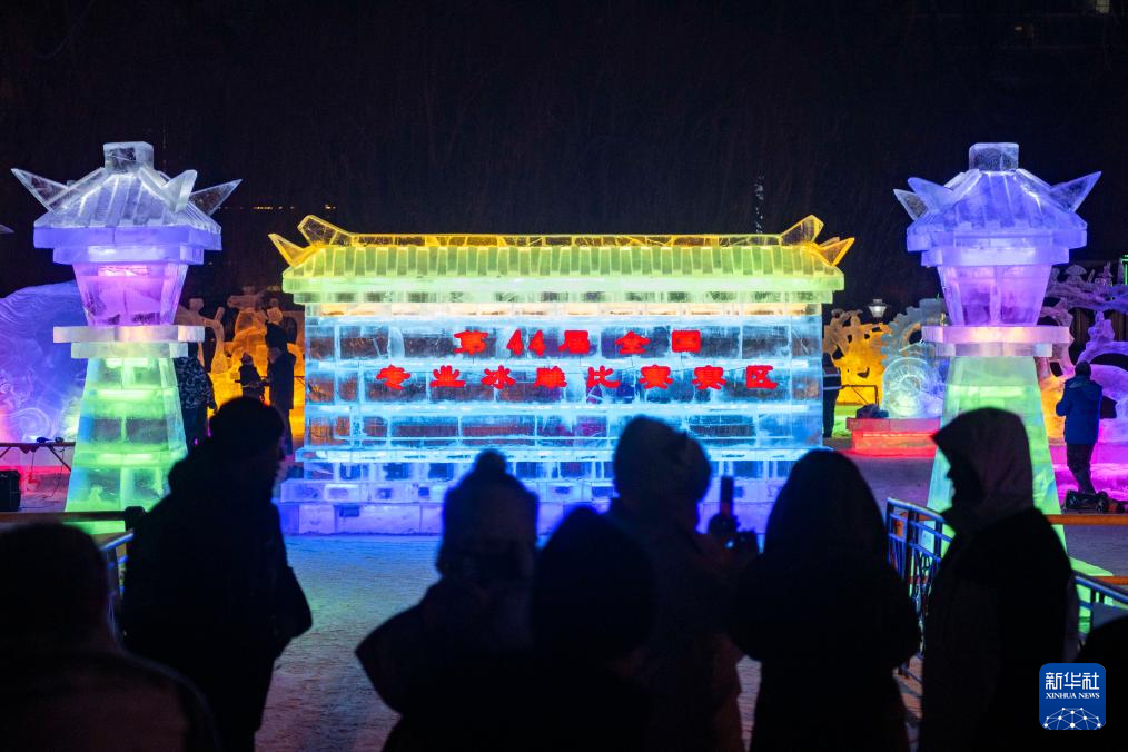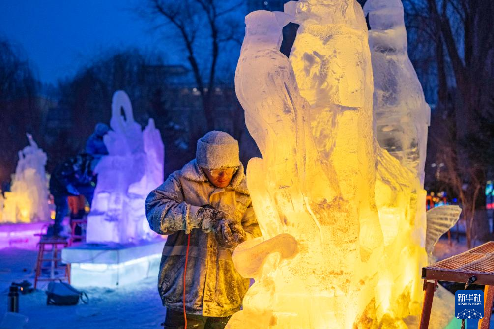 當日,在哈爾濱市兆麟公園舉行的第44屆全國專業冰雕比賽進入第2個比賽日,來自全國的冰雕師加緊創作冰雕作品。這些冰雕將作為公園冰雪景觀的一部分,為市民游客獻上一場冰雪藝術的視覺盛宴。