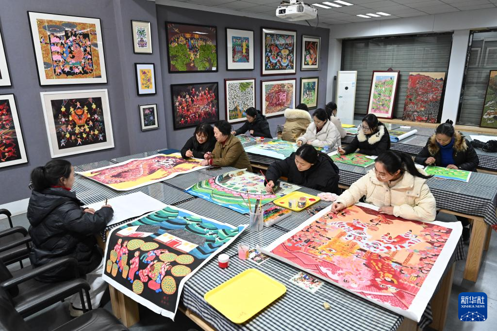 1月10日,農民畫愛好者在漳平市農民畫院學習、創作農民畫。