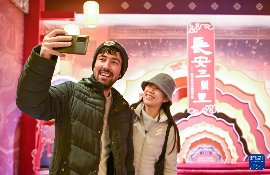 1月15日,觀眾在“長安三萬里——陜西唐代文物精華展”上留影。