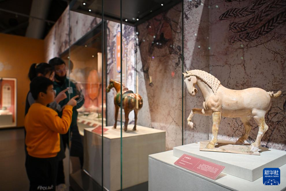當日,“長安三萬里——陜西唐代文物精華展”在國家海洋博物館開幕。此次展覽薈萃陜西歷史博物館、西安博物院、陜西省考古研究院、昭陵博物館、乾陵博物館、西安市長安博物館、寶雞市鳳翔區博物館、長武縣博物館等陜西省八家文博單位的約120件(套)唐代文物,涵蓋陶俑、金銀器、瓷器、三彩器、玉器、銅鏡等文物類型,展示了唐代工藝的卓越成就。