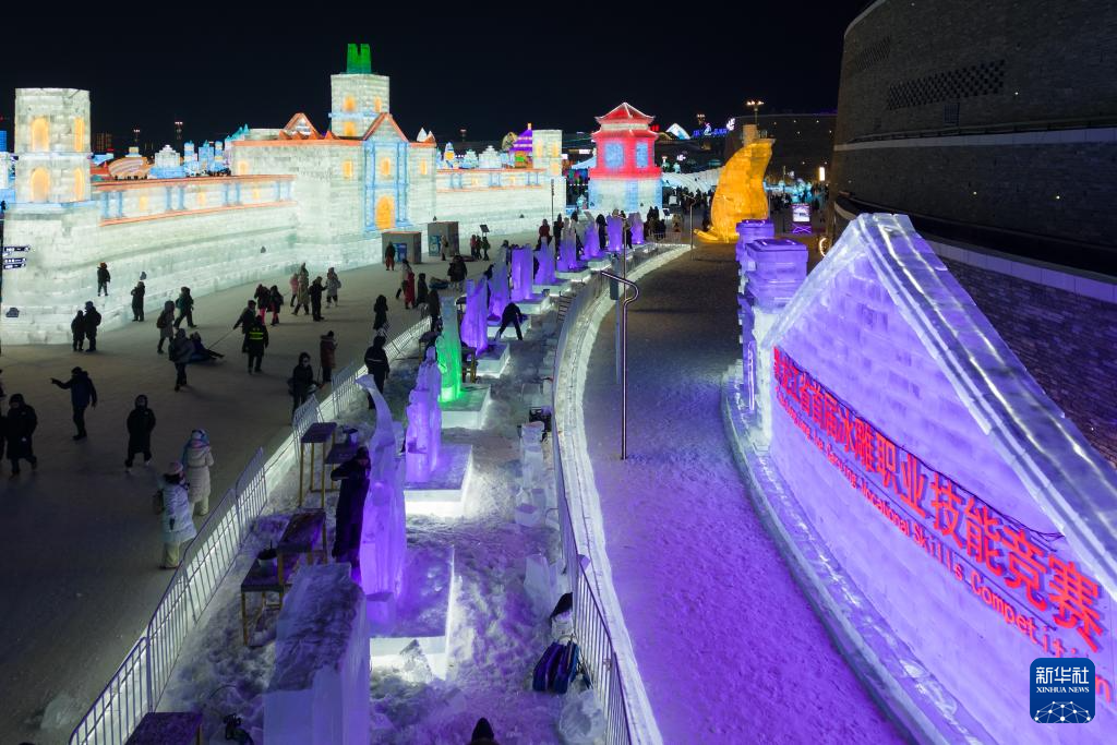 當日,黑龍江省首屆冰雕職業技能競賽在哈爾濱冰雪大世界正式開賽,18支代表隊的50多位冰雕選手冰城秀技,吸引眾多游客關注。