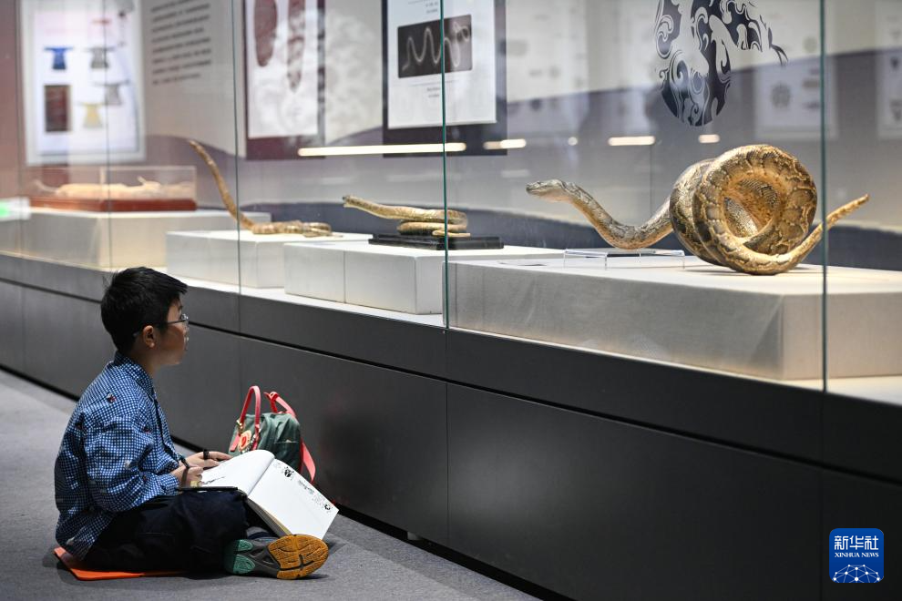 乙巳蛇年將至,近日在國家自然博物館舉辦的“靈蛇獻瑞——2025乙巳蛇年生肖文物大聯展”吸引觀眾前來參觀。展覽展出近50件蛇類標本和大量與蛇有關的文物、工藝品等。
