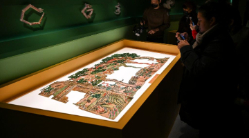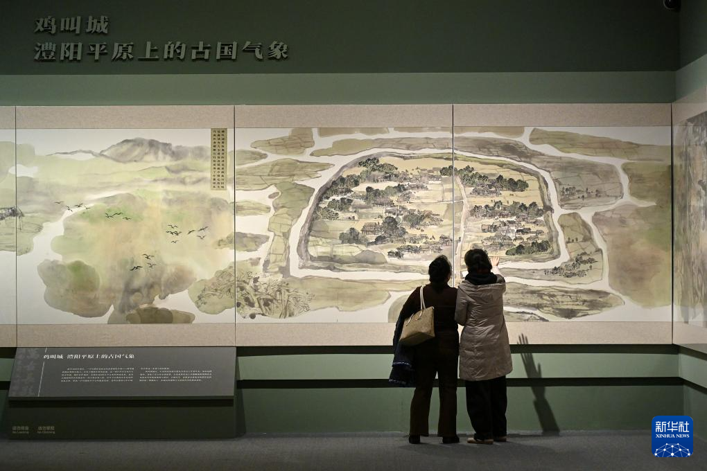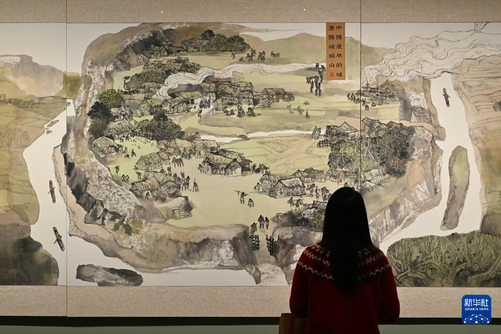 1月21日,參觀者在“萬古長歌——湖南史前文明圖卷展”上觀看圖卷。