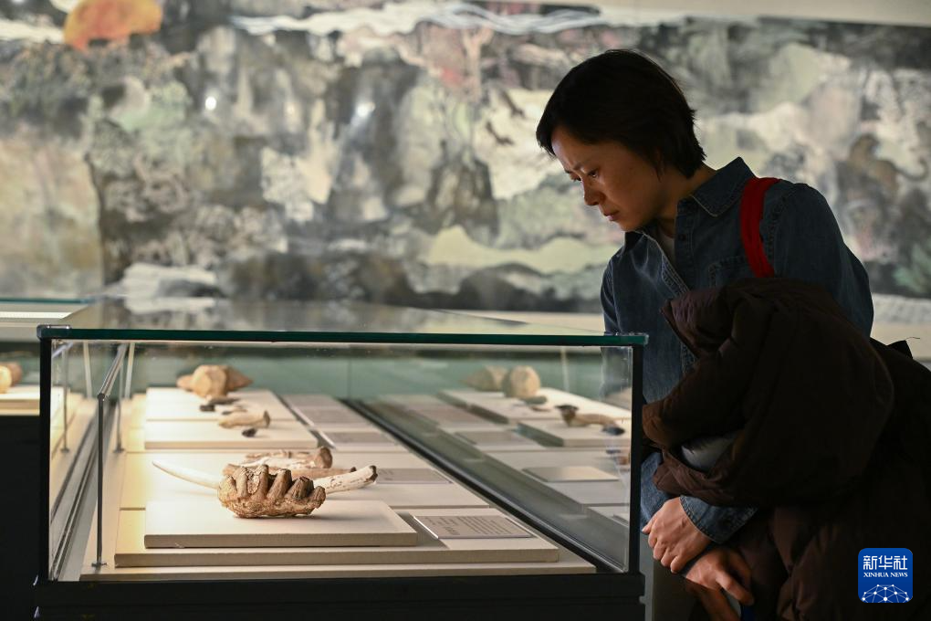 1月21日,參觀者在“萬古長歌——湖南史前文明圖卷展”上參觀。