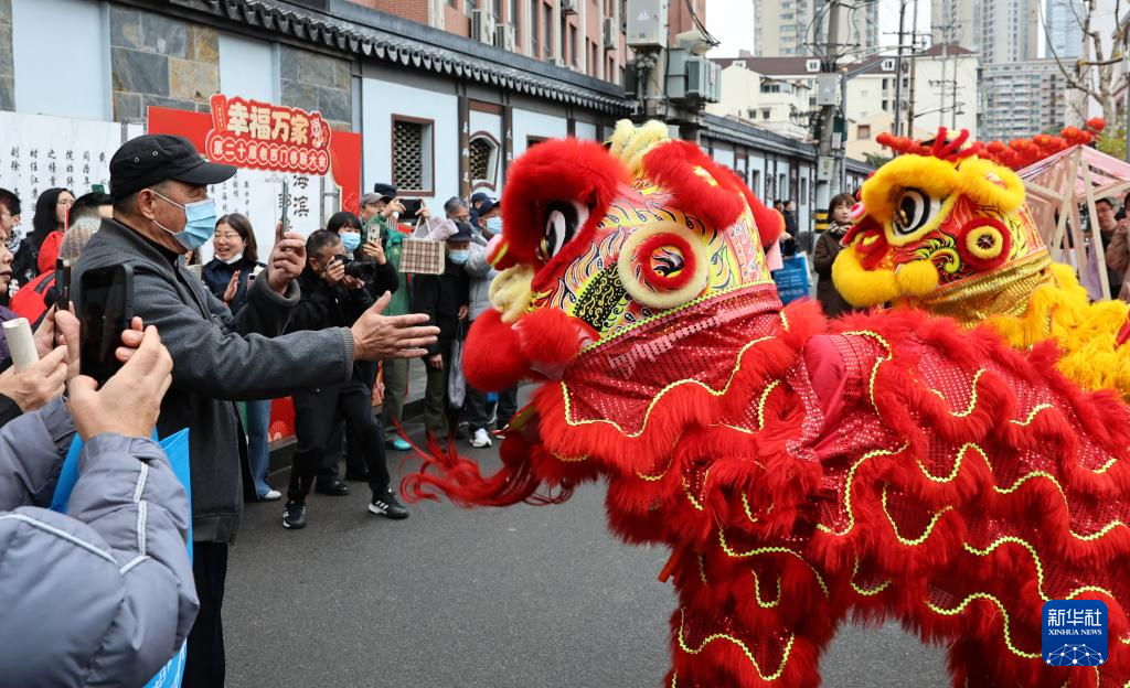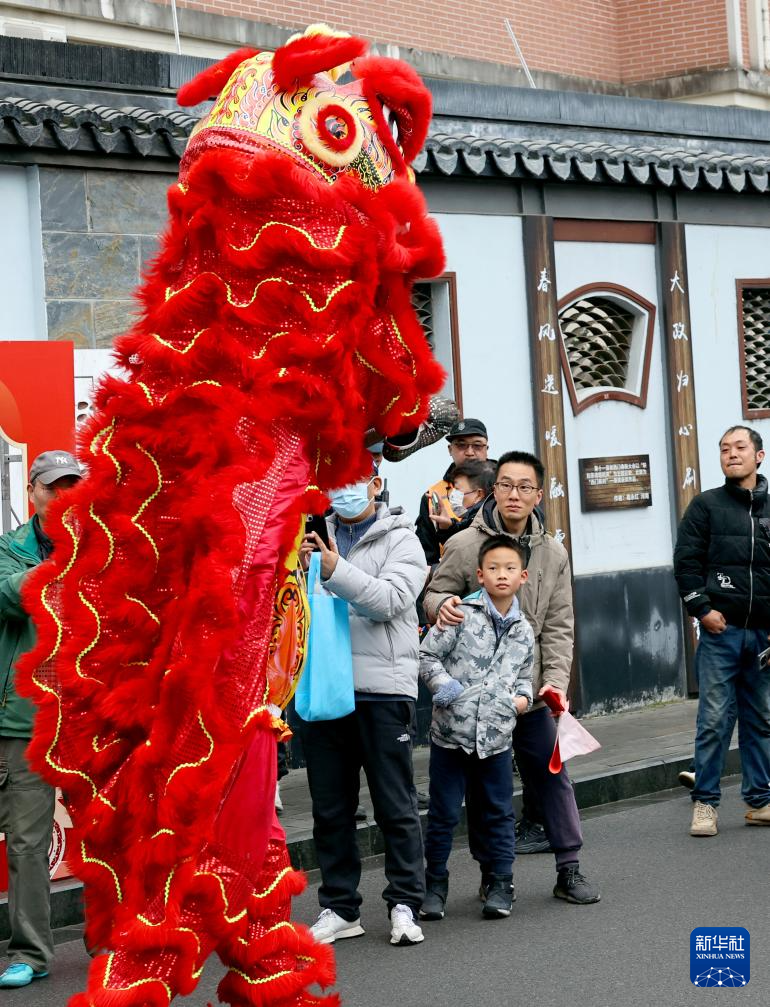 1月23日,傳統舞獅表演吸引市民游客拍照互動。