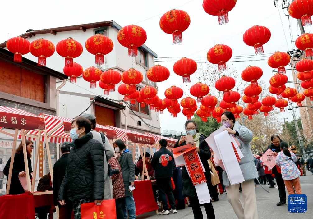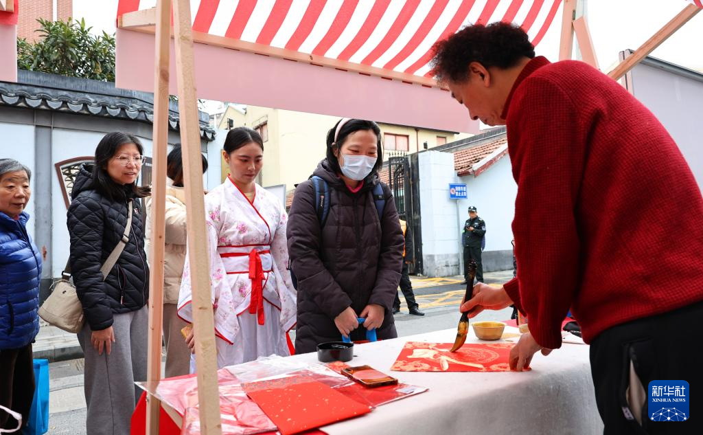 當日,“幸福萬家”第二十屆老西門春聯大會在上海黃浦區老西門街道舉行。市民游客不僅可以在現場領取書法家和社區書法愛好者們手書的春聯福字,還能在非遺展示攤位前體驗傳統手工藝,蛇年春節味道漸濃。