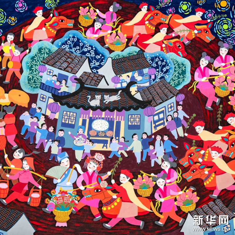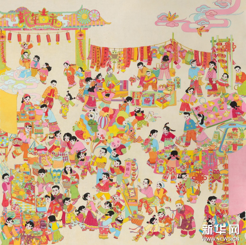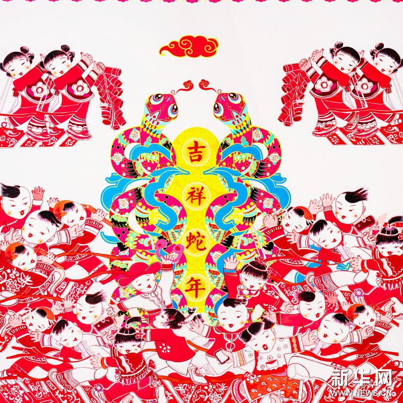 編者按:2025年蛇年春節將至,中宣部文明實踐局、文化和旅游部公共服務司、中國美術家協會聯合新華網文化頻道、新華網書畫頻道共同推出一組年畫作品鑒賞,希望借由這些充滿盎然生趣、紅火年節氣氛的畫作,為您送去新春的祝福,讓我們一起賞年畫 過大年!