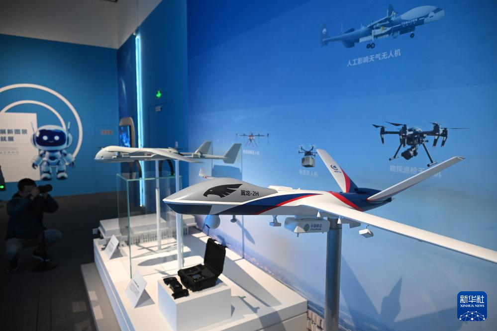 這是2月20日在網絡發展新圖景成就展上拍攝的無人機模型。