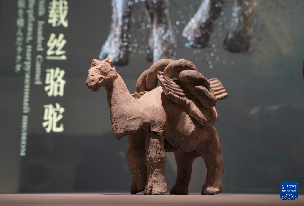 西部機場博物館展出的北周文物彩繪陶載絲駱駝(2月26日攝)。