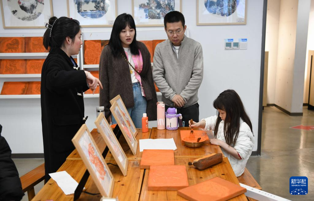3月15日,游客在涇縣宣紙文化園體驗宣紙印染。