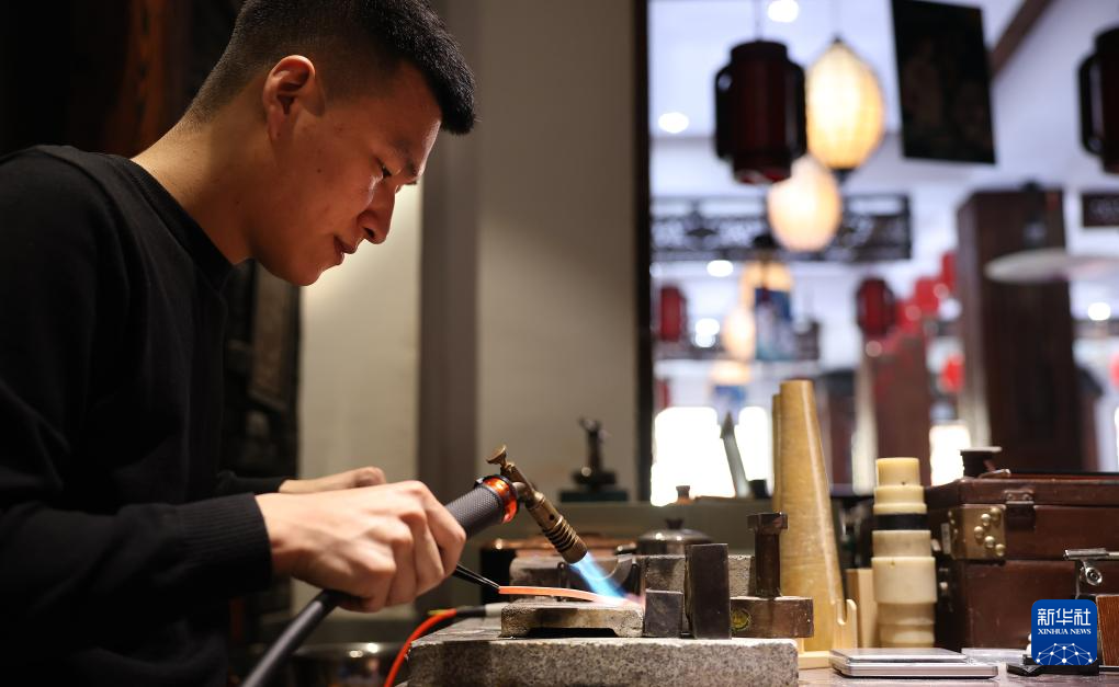 3月11日,孫朋在營口老世興銀樓工坊里制作銀飾。