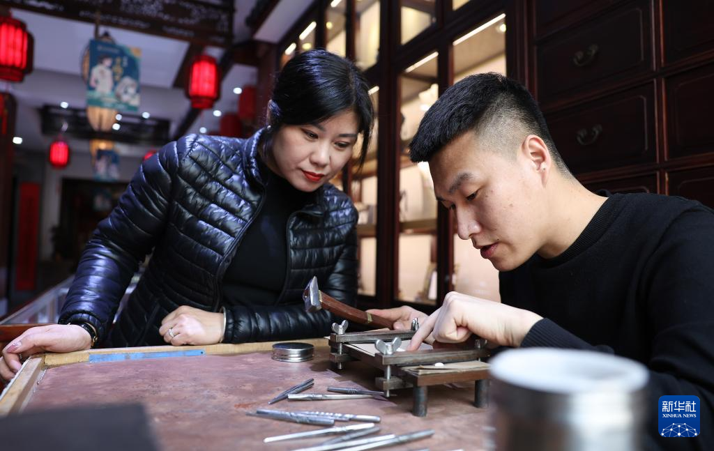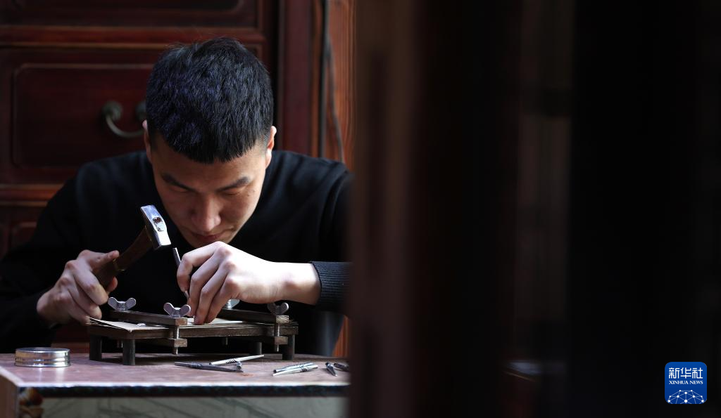 一張銀片錘萬遍,一件銀飾藏匠心。傳承120余年的老世興金銀制作技藝工藝精細、紋樣豐富、造型獨特。作為年輕的技藝傳承人,孫朋說,“學習制作銀藝不僅讓我掌握了一門技藝,更讓我感受到傳統文化的魅力。我希望未來能像師父一樣,將這門技藝傳承下去?!?/p>