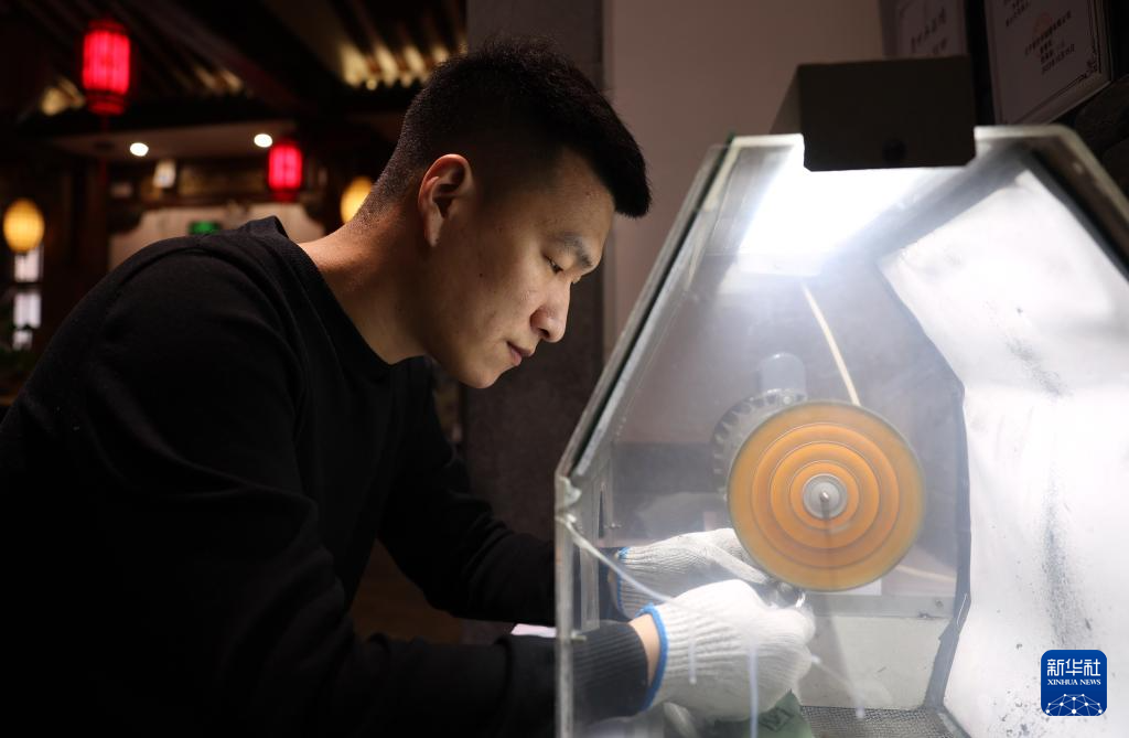3月11日,孫朋對銀飾品進行拋光處理。